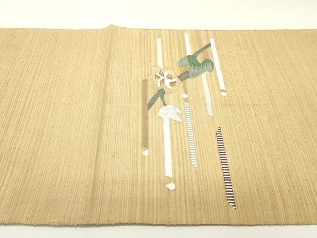 平和屋着物●塩瀬 九寸名古屋帯 作家者 手描き 草花文 生成り色 金彩 正絹 DAAY0151ob