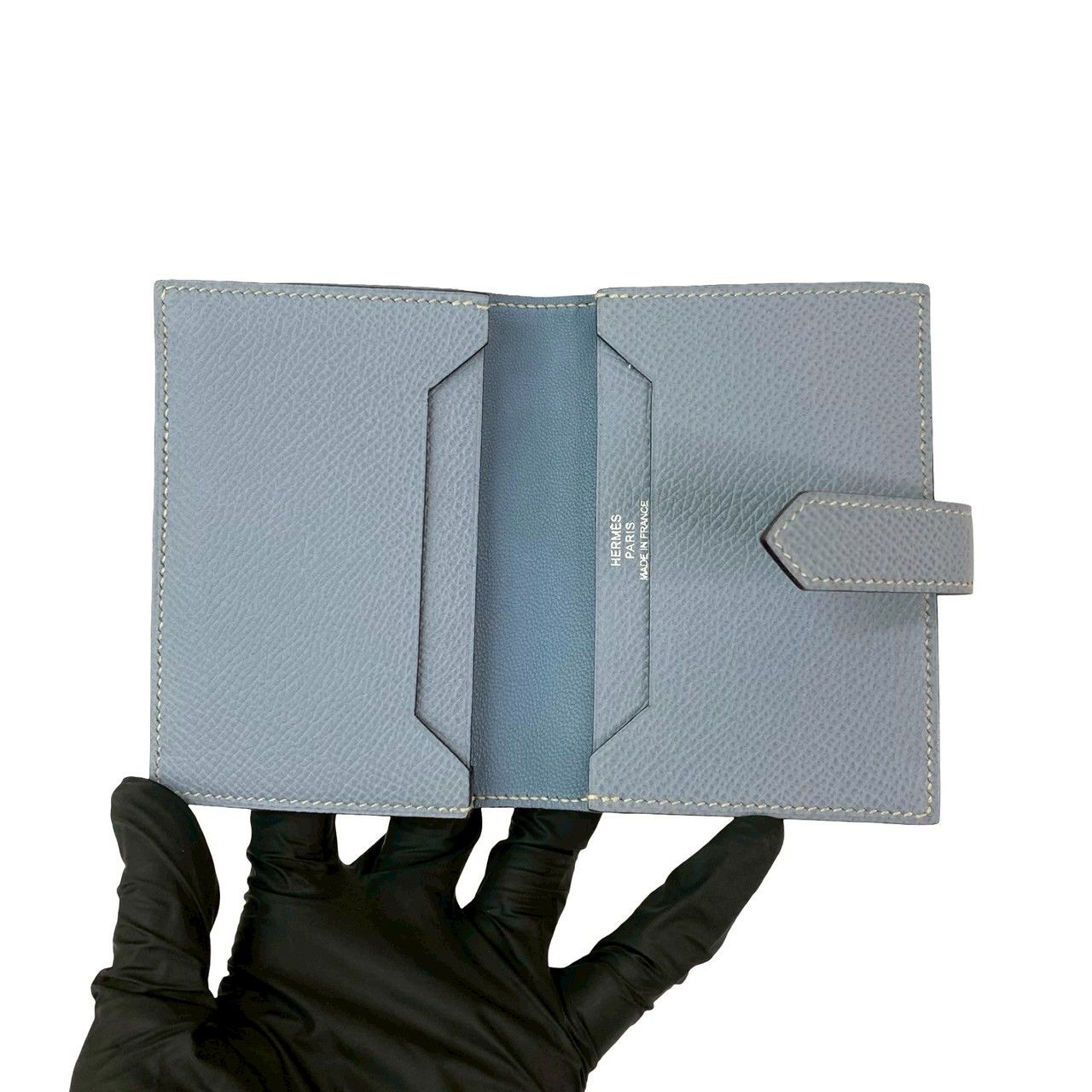 ほぼ♥ 品 □O 刻印 HERMES エルメス ベアン ミニ カードケース ヴォーエプソン レザー 本革 カードケース ライトブルー 71810 WWW_NICORILABO_COM