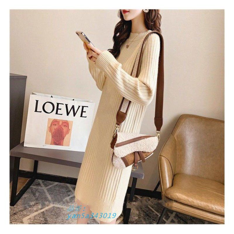 ニットワンピース レディース 無地 クルーネック プルオーバー ロングセーター 秋冬 モダン プリント 膝下 ファッション 厚手 無地 ゆったり 長袖 yan5a343019 WWW_NICORILABO_COM