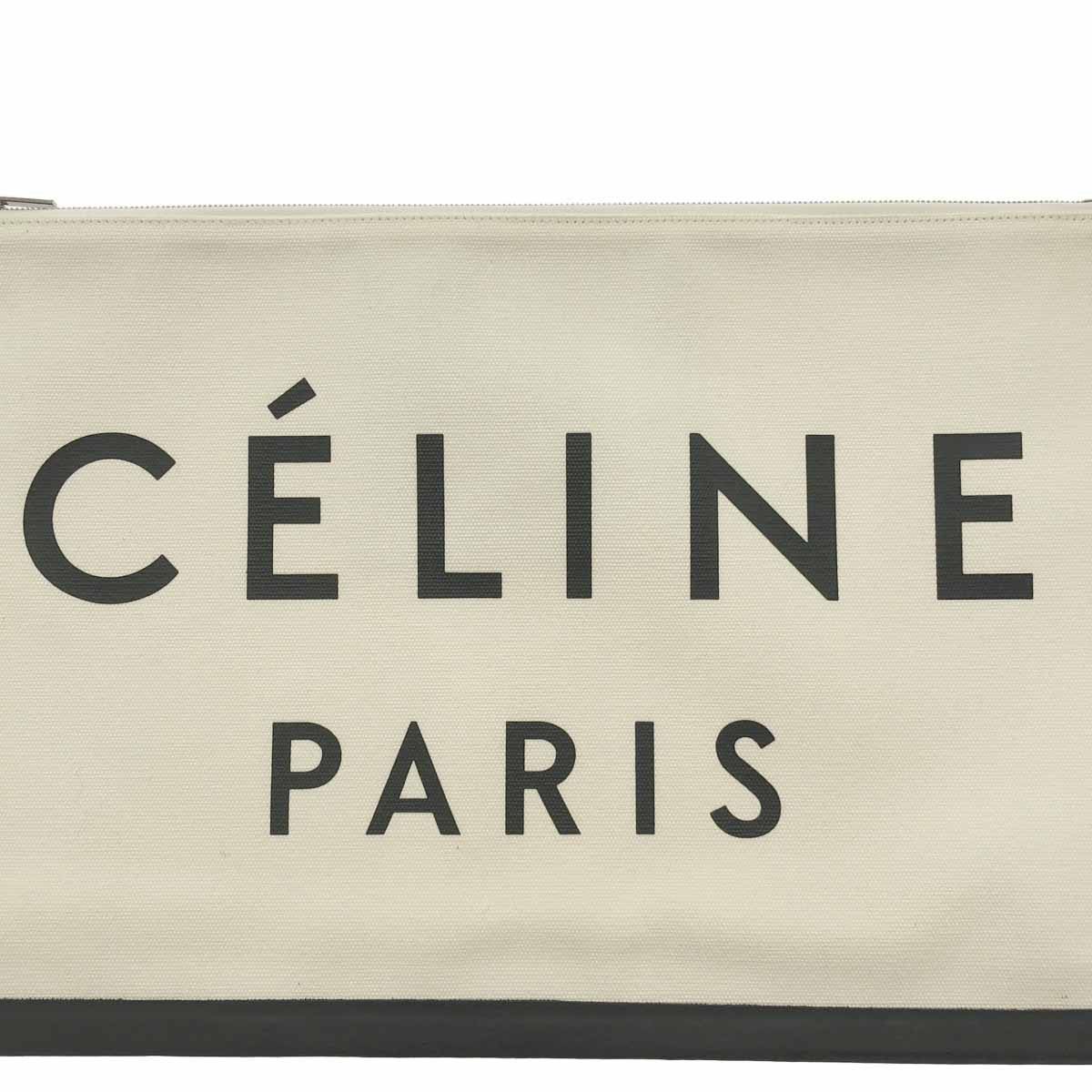 CELINE by Phoebe Philo セリーヌ フィービーファイロ レザートリムロゴプリントキャンバスクラッチバッグ アイボリー WWW_NICORILABO_COM