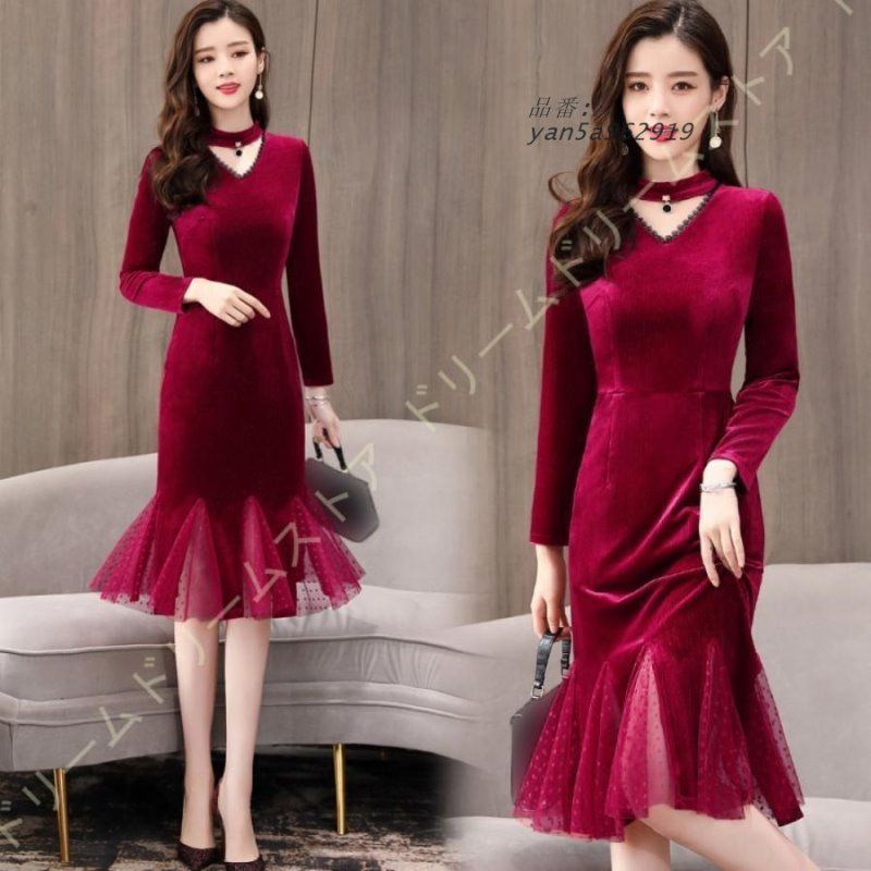 イブニングドレス パーティー パーティードレス 長袖 キャバ カクテルドレス ブライダルドレス マーメイドライン タイト 大きいサイズ 花柄ドレス yan5a962919 WWW_NICORILABO_COM