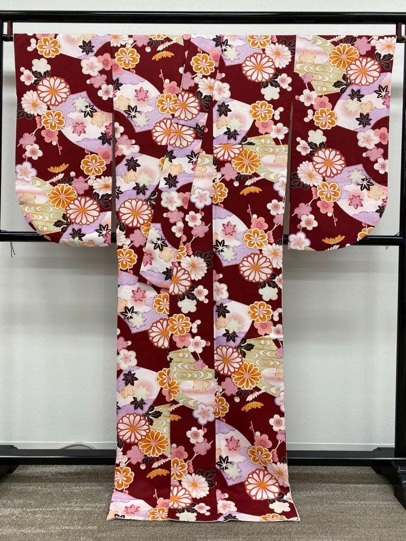 2尺袖 ポリエステル着物 紋意匠 花 流水 袴向き WWW_NICORILABO_COM