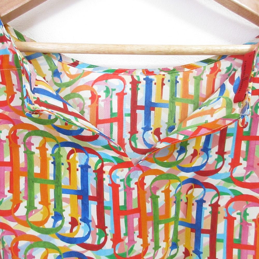 CAROLINA HERRERA キャロライナヘレラ CHマルチ ロゴプリント ブラウス ワイドパンツ セットアップ サイズL マルチカラー レディース 古着 WWW_NICORILABO_COM