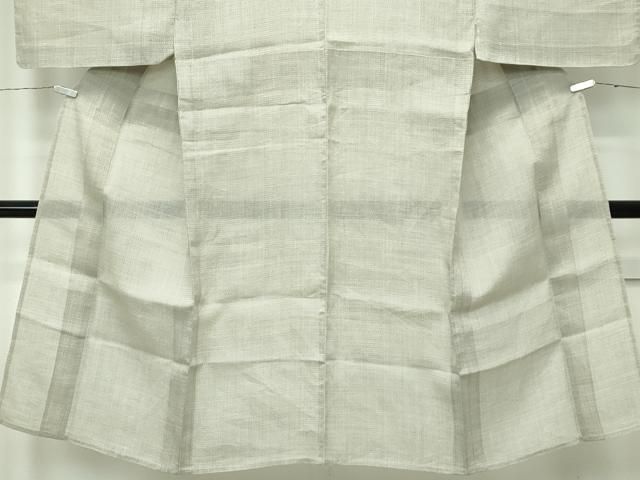 男着物 身丈139cm 裄丈66cm S 薄物 小千谷縮 夏紬 証紙 灰緑 麻 秀品