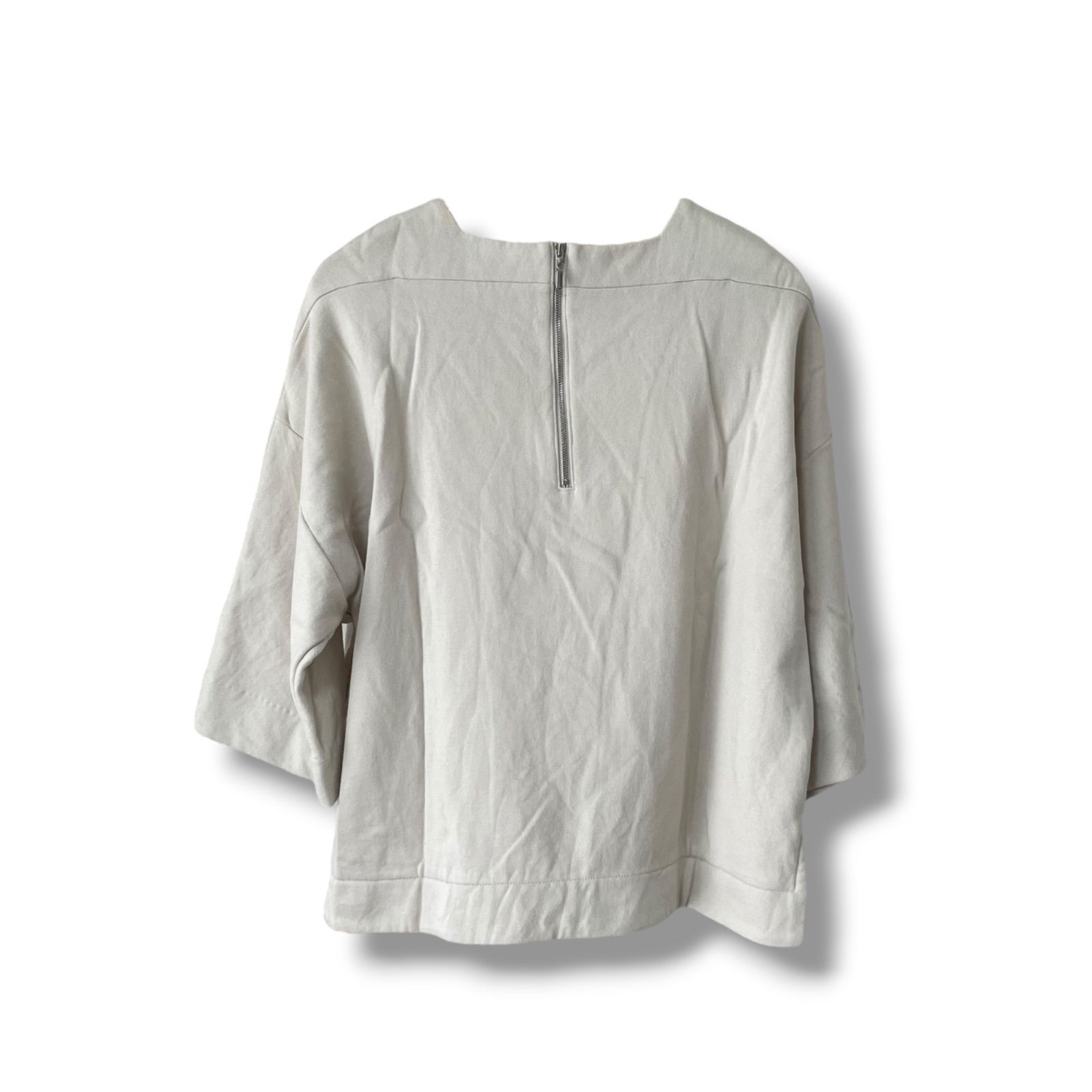 ebure エブール グレージュ ベージュグレー 七分袖 ニット セーター 綿67% 毛33% 日本製 38 Mサイズ相当 レディース カジュアル ナチュラル 上質素材 古着 0000531OC WWW_NICORILABO_COM