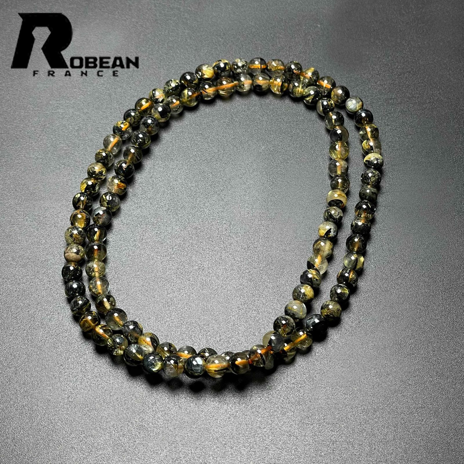 EU製 定価14万円 ROBEAN タイチンルチル 黄金針水晶 ゴールド 金運 開運 3本巻きブレスレット パワーストーン プレゼント 5.8-6.2mm M1023838