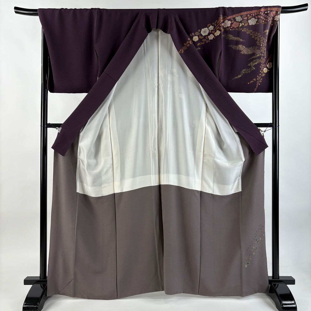 訪問着 身丈165.5cm 裄丈69cm L 袷 吉乃一廉 落款 辻ヶ花 流水 金彩 染め分け 濃紫 正絹の検索結果