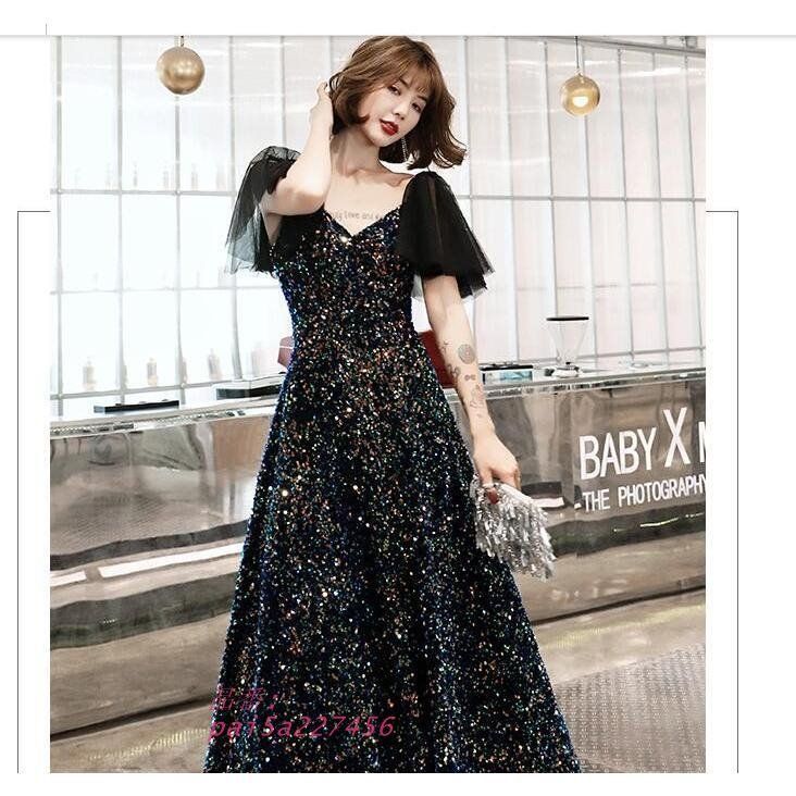 パーテイードレス ロング丈ドレス レディース オフショルダー 肩出し キラキラ 大きいサイズ 着痩せ 発表会 エレ20代 二次会 演奏会 yan5a916041