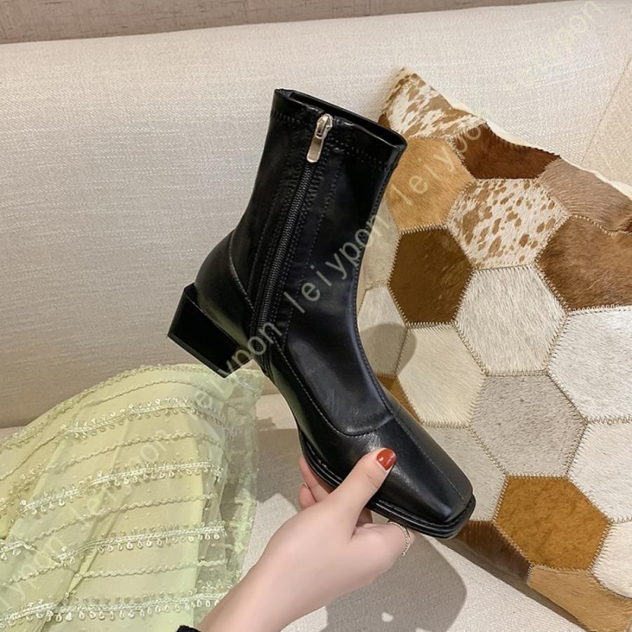 歩きやすい 美脚 ショートブーツ レディース 本革 ブーティ 太ヒール アンクルブーツ 疲れにくい 黒 サイドジップ ローヒール チャンキーヒール ファスナーの検索結果