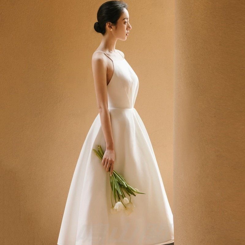送料無料 フレンチシルク風シンプル軽婚 !-利用不可文字-! 白 ロング丈Aライン キャミソール ドレス 露背 小白ワンピ 旅撮りにも最適WP今だけ 109の検索結果