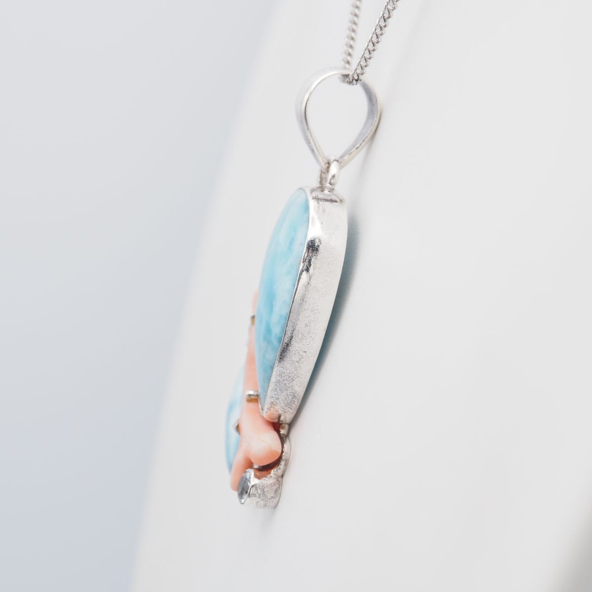 G924 ラリマー 珊瑚 サンゴ ダイヤモンド風 925刻印 ペンダント トップ デザイン シルバー チャーム ヘッド 3月誕生石 WWW_NICORILABO_COM