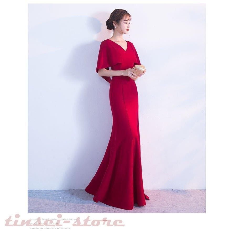 カラードレス レッド スパンマーメイドドレス ロングドレス フォーマル ファスナー パーティードレス ワンショルダー イブニングドレス ナイトドレス kni5a849861