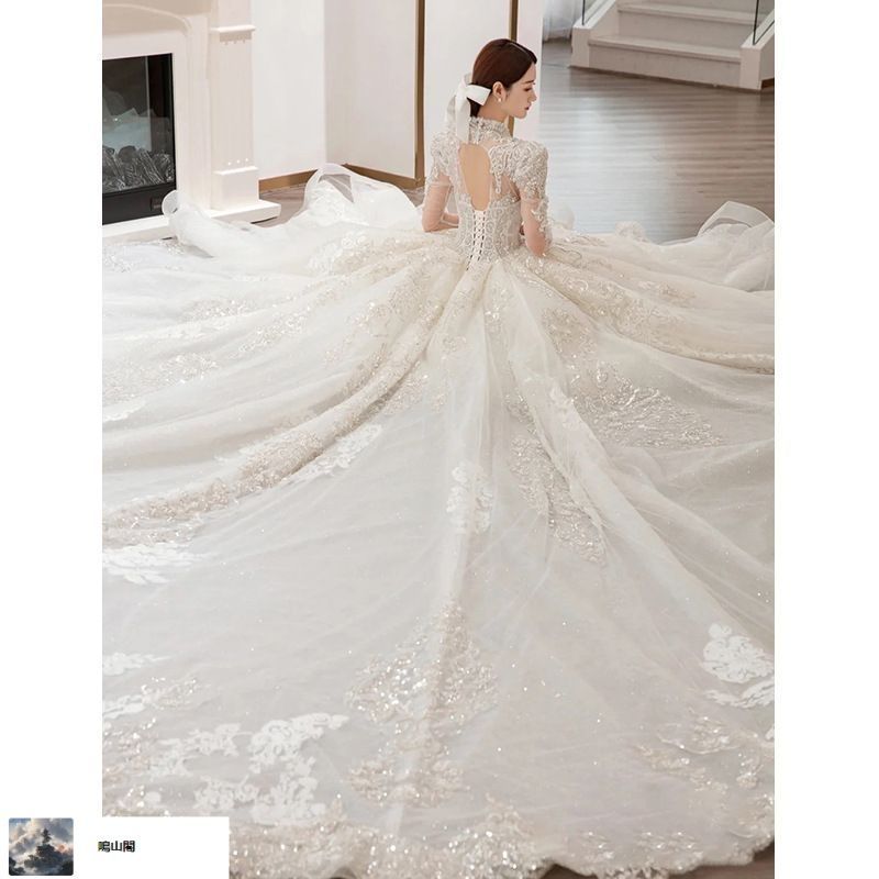 送料無料 2025 感あふれるフレンチ重工刺繍 ウェディングドレス 豪華ロングトレーン主 !-利用不可文字-! -8.13LYC680夏の新生活