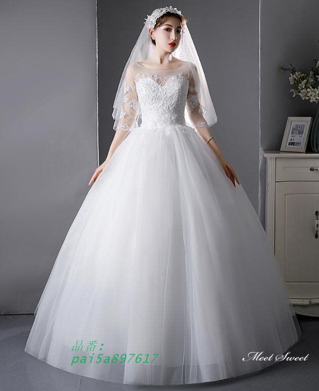 ウェディングドレス ロングドレス プリンセスラインドレス 5分袖 二次会 結婚式 ブライダル 前撮り シンプル 挙式 チュール ウエディングドレス 花嫁 pai5a897617の検索結果