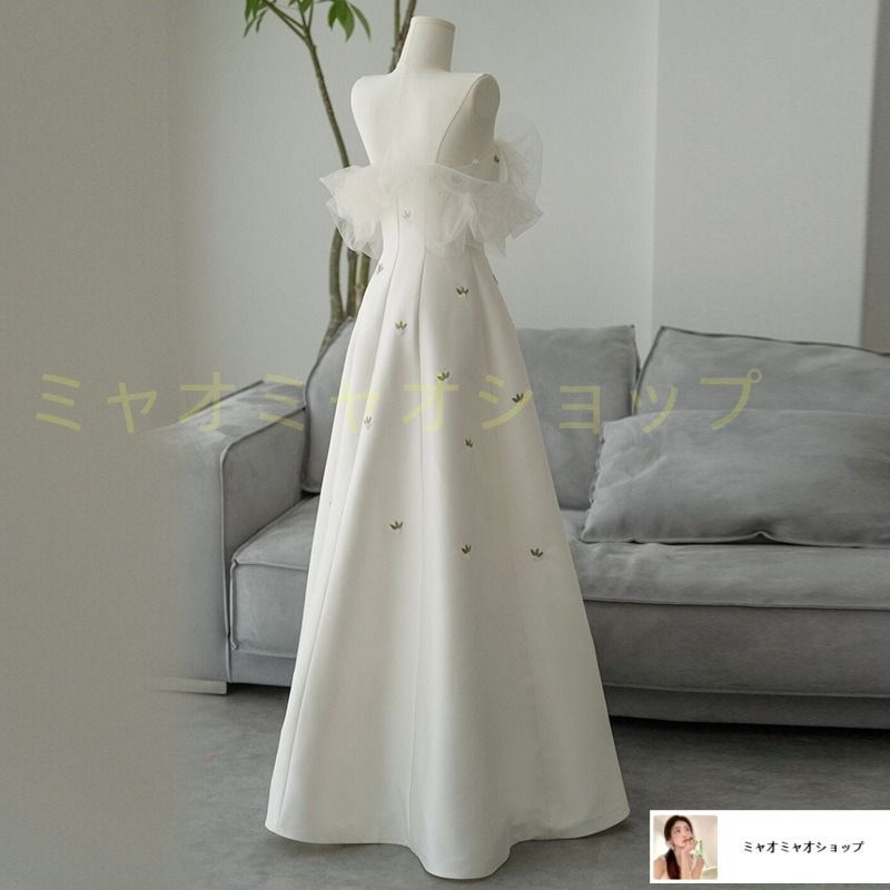 カラードレス ロングドレス ウェディングドレス 白いウェディングドレス Aラインドレス 魚尾ライン オフショルダー 演奏会 発表会 二次会 成人式 卒業式