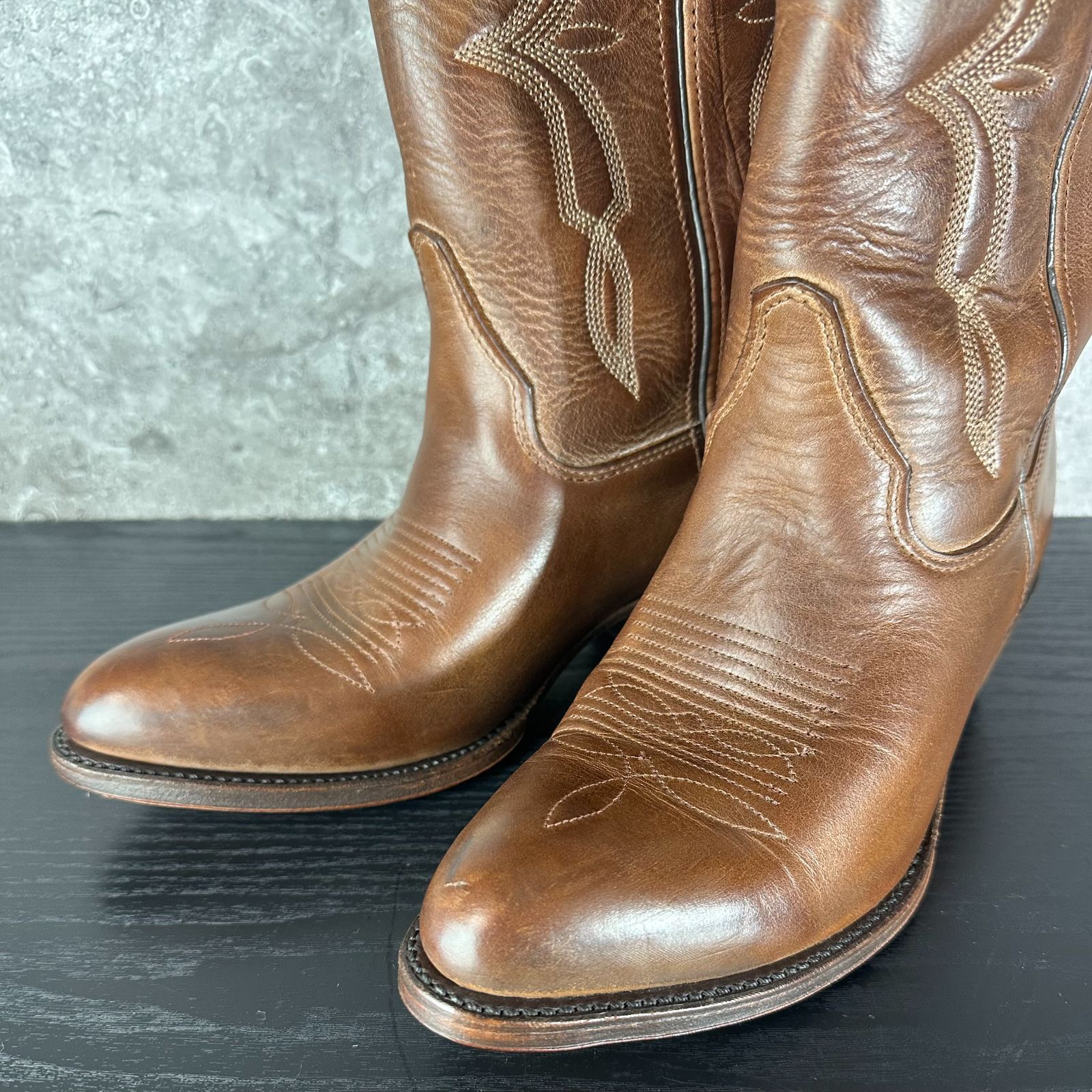 S142 デッドストック品 90s H.H.BROWN ヘンリーHブラウン DOUBLE-H ダブルエイチ 本革レザー ウエスタンブーツ カウボーイブーツ US SKI TEAM 6288 ブラウン茶 US7 1|2 25.5-26.0cmの検索結果