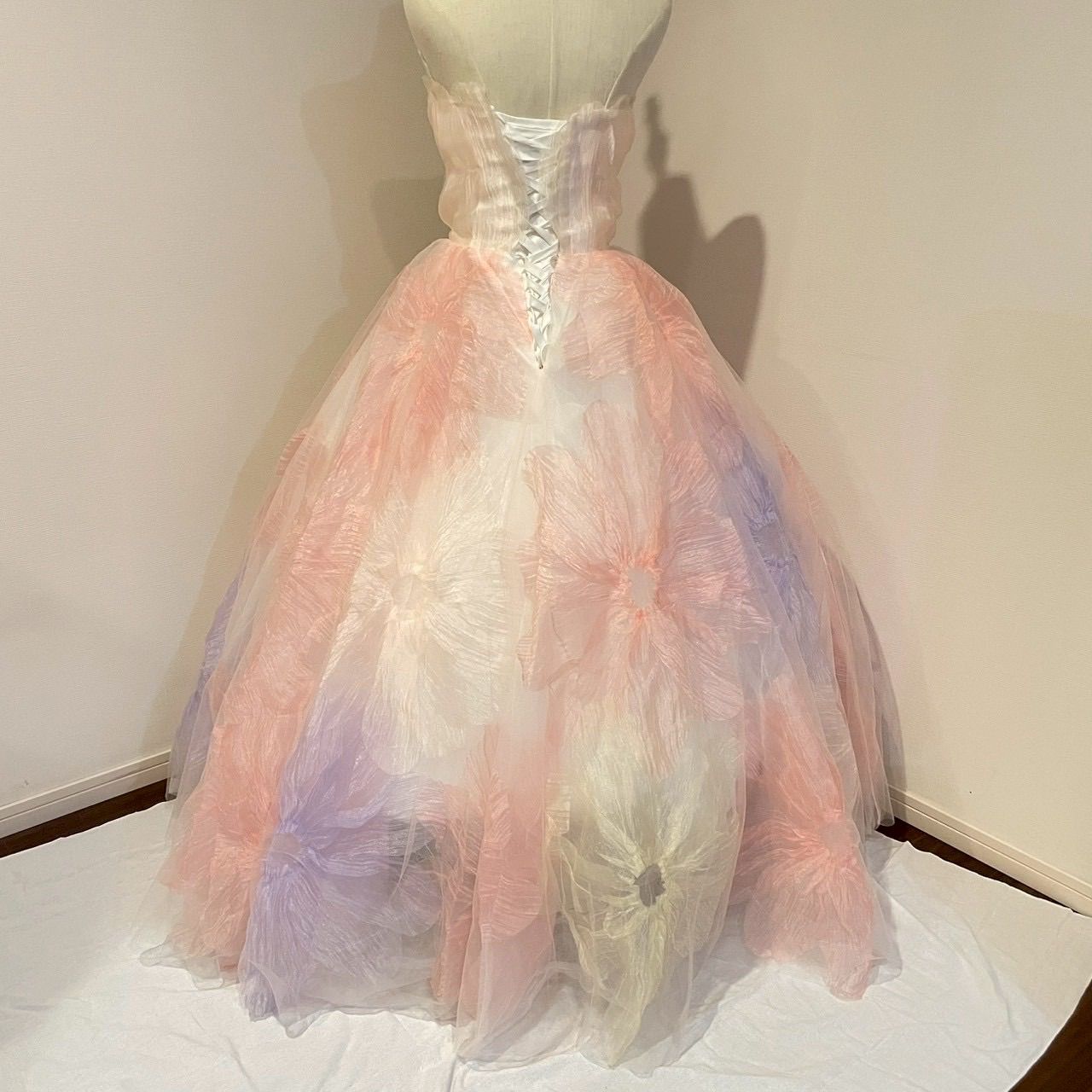 即日発送 フラワーボリュームドレス ピンク ベージュ S オーガンジー 花びらデザイン チュールドレス 結婚式 前撮り 二次会 披露宴 ロケーション撮影 カラードレス 春夏 花嫁 Aライン pipsセレクトの検索結果