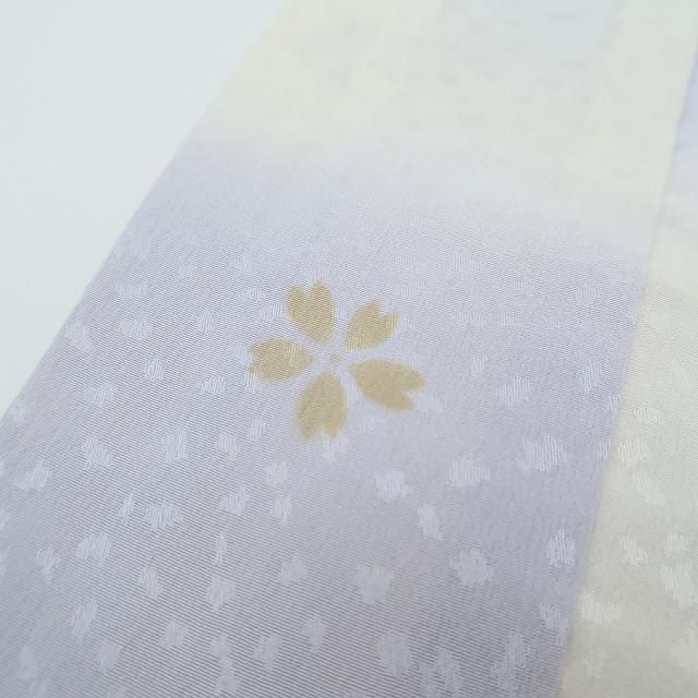 ラベンダー色×アイボリー色の冬の空が市松を繋ぎ、桜吹雪でおめかし♪