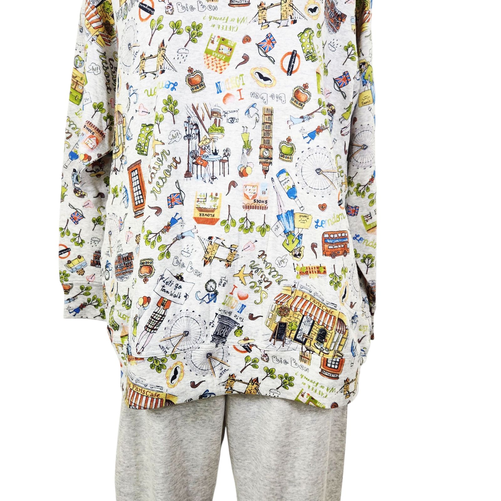 鴨居羊子パジャマ ♥ TUNIC 丸首長袖トレーナパジャマ 40接結ロンドン 23442 グレー色 日本製の検索結果