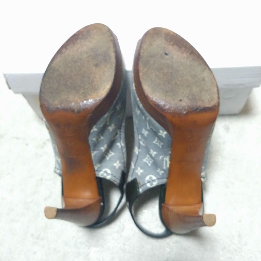 正規品 LOUIS VUITTON ルイヴィトン モノグラム デニム オープントゥ サンダル パンプス 35 22.5cm ハイヒール ピンヒール バックストラップ WWW_NICORILABO_COM