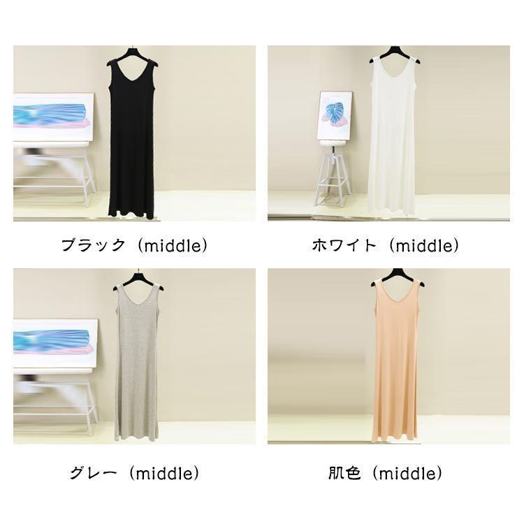 3丈さ選べる スリップ シンプル ペチコート ノースリーブ 3丈さ選べる スリップ インナーワンピース タンクトップ型 ミディアム 膝丈 ミモレ丈 ワンピース 無地 伸縮性 春夏 dkhsh592107 WWW_NICORILABO_COM