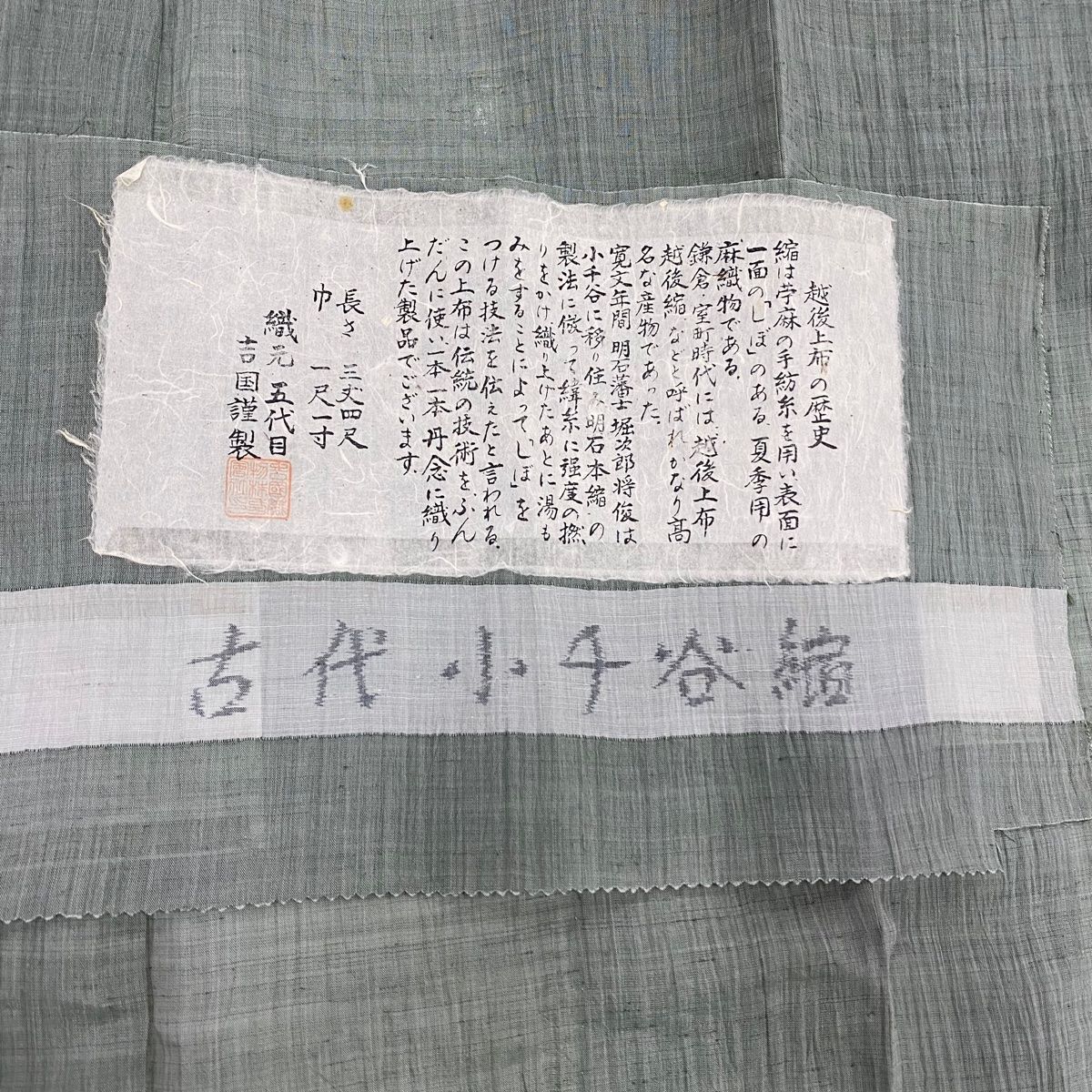 男着物 身丈139cm 裄丈66cm S 薄物 小千谷縮 夏紬 証紙 灰緑 麻 秀品の検索結果