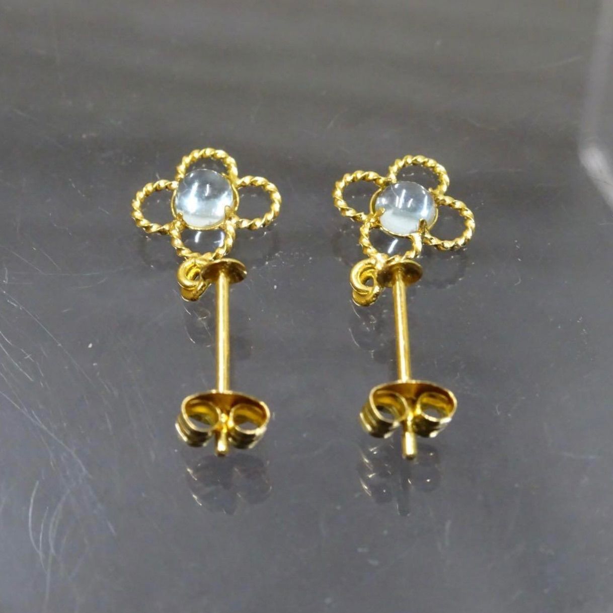 18金 K18 ゴールド GOLD 750 天然アクアマリン ぶら下がり クローバー デザイン ピアス 両耳 総重量約0.48g ジュエリー 宝石 貴金属 レディース 普段使い WWW_NICORILABO_COM