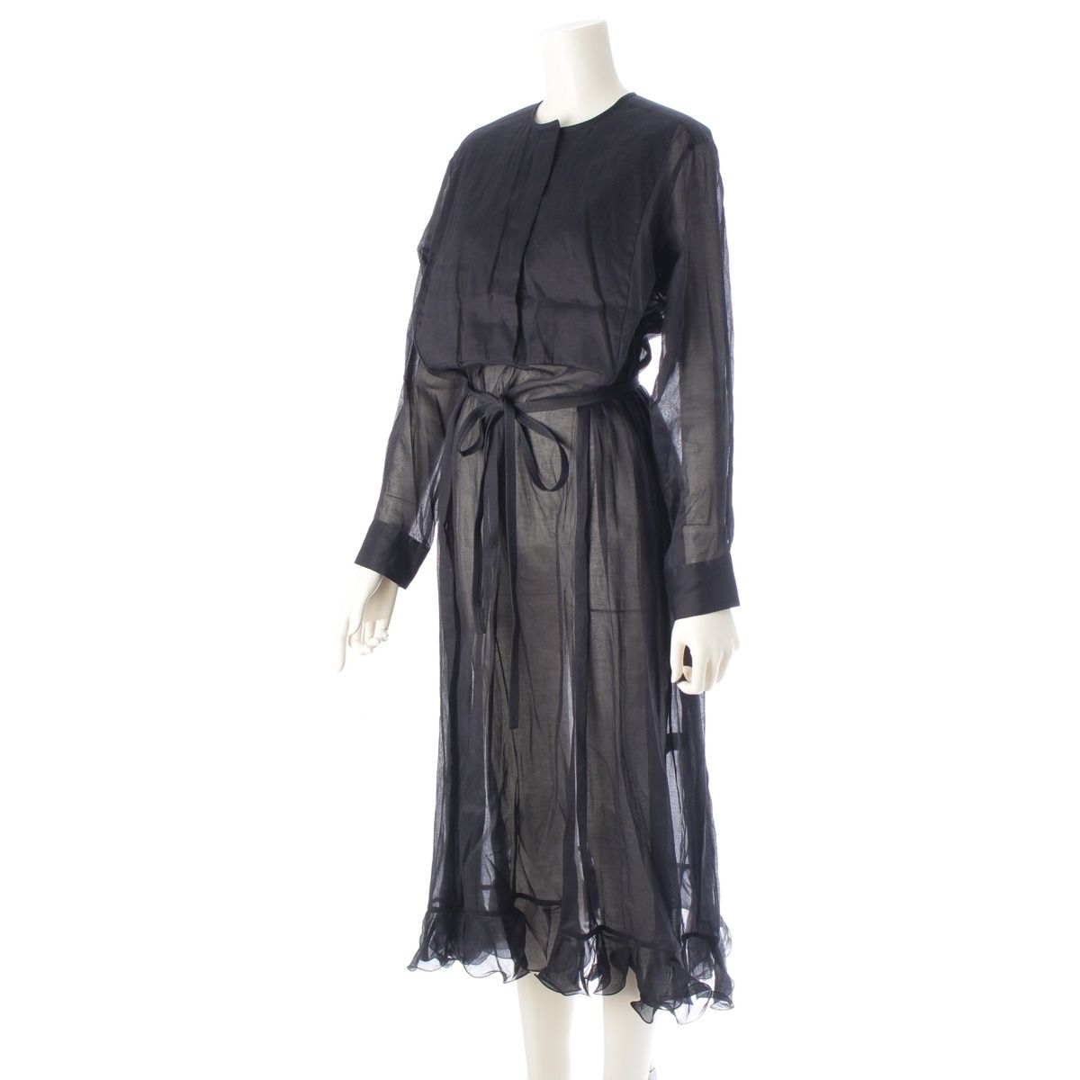 ドゥロワー 23SS 16Gx コットン レーヨン タフタワン 長袖シアー アンダードレス付き アンサンブル ワンピース 6526-299-1373 ブラック 36 WWW_NICORILABO_COM
