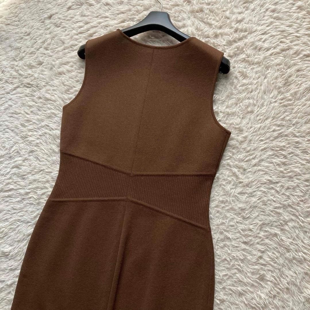 FOXEY BOUTIQUE フォクシーブティック ニットワンピース ノースリーブ ひざ丈 ウエストリブ 日本製 ブラウン 茶色 40サイズ WWW_NICORILABO_COM