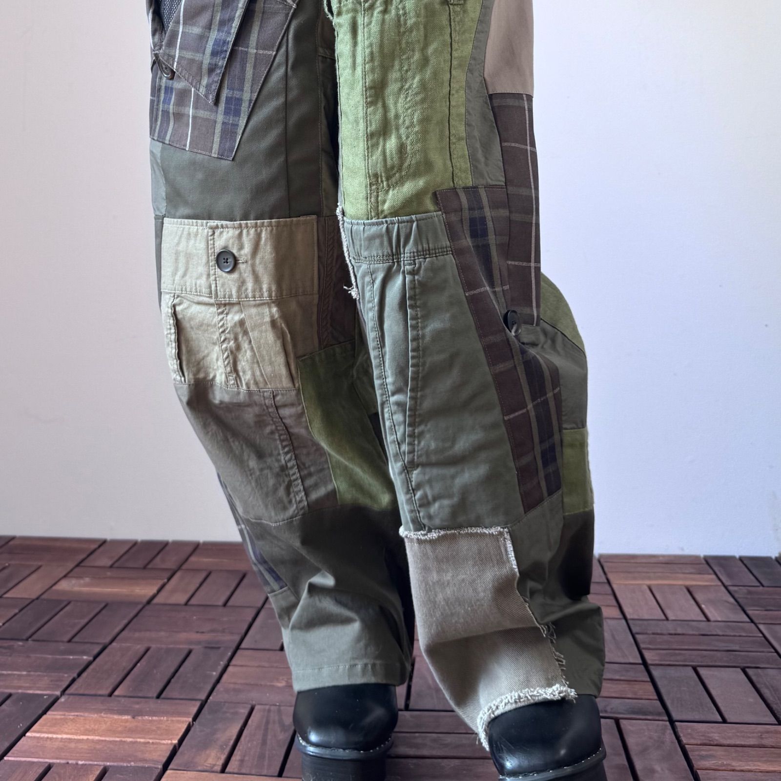 カーキオリーブ色の古着リメイクパッチワーク ワイド|バルーンパンツ No.040の検索結果