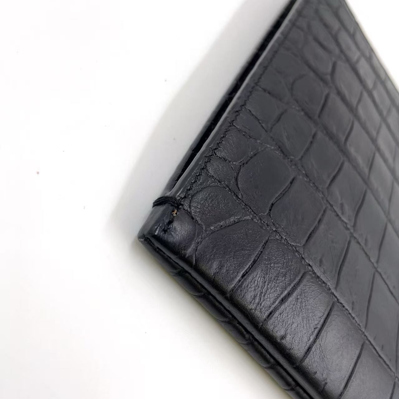 SAINT LAURENT PARIS クロコダイル型押しレザー タブレットスリーブ レザー ブラック クラッチバッグ シルバー 375950 CS30E 1000 WWW_NICORILABO_COM