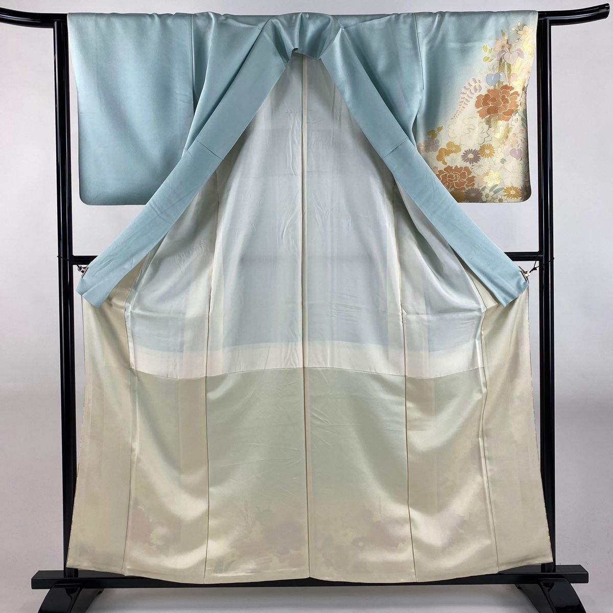 付下げ 身丈159cm 裄丈63.5cm S 袷 渡辺雪三郎 落款 草花 藤 金彩 染め分け 水色 正絹の検索結果