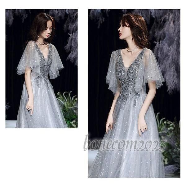 ロングドレス 演奏会 黒 袖付き キラキラ レディース 大人 ピアノ 発表会 母親 結婚式 韓国風 ロング 小さいサイズ XS 大きいサイズ L 体型カバー Vネック オペ WWW_NICORILABO_COM