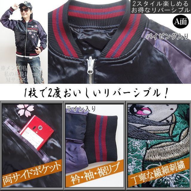 セール 20%OFF 抜刀娘|バットウムスメ×Hello Kittyハローキティコラボ 送料無料 ほのかちゃん あおいちゃん&キティちゃん ムスメちゃん 総刺繍 リバーシブル ブルゾン|スカジャン 黒×袖パープル M|L|XL smtb-k ky WWW_NICORILABO_COM