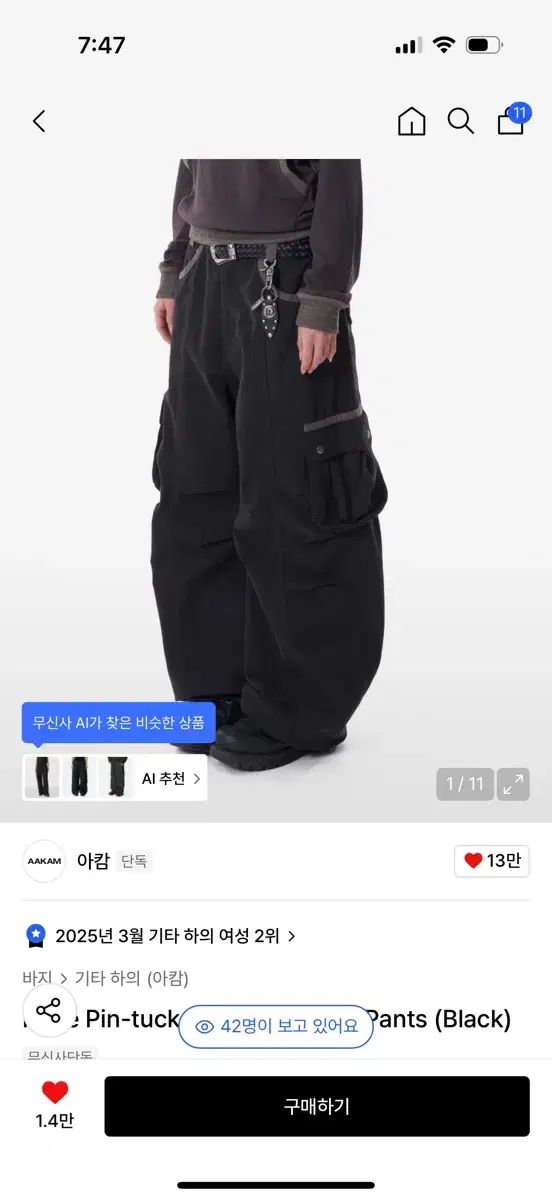 アカム Knee Pin-tuck Contrast カーゴパンツの検索結果