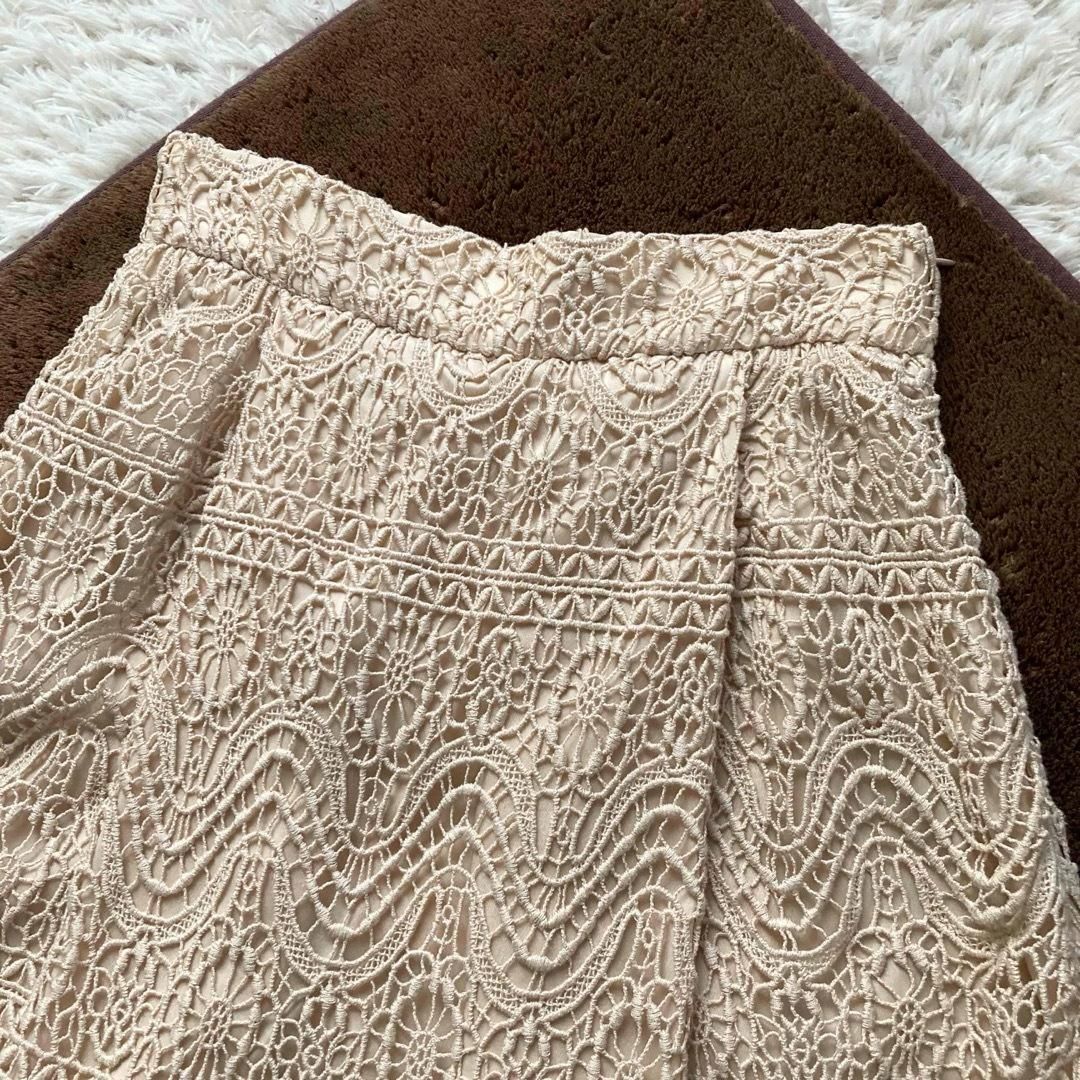 ヴァレンティノガラヴァーニ VALENTINO GARAVANI Aラインスカート フ スカート ひざ上丈 レース 裾カットオフ 切りっぱなし イタリア製 2010年前後 ベージュ 38サイズ WWW_NICORILABO_COM