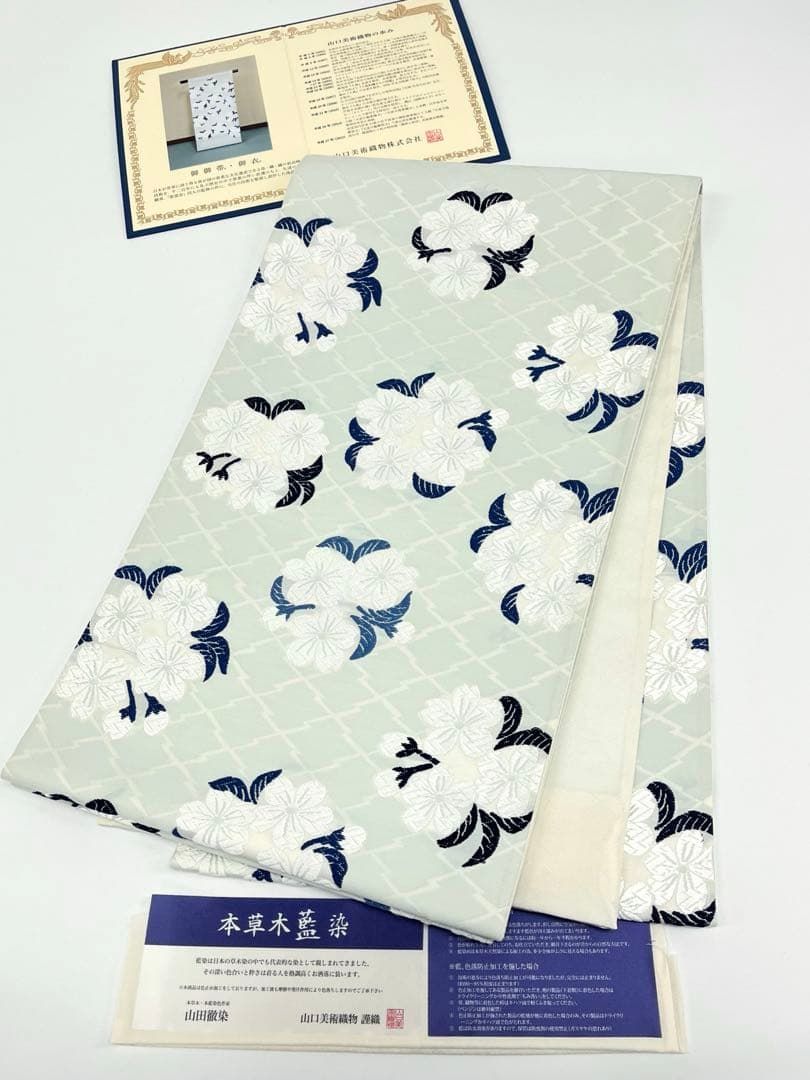 本草木藍染 山口美術織物 唐織 袋帯 ♥品 正絹 お太鼓柄 証書付き WWW_NICORILABO_COM