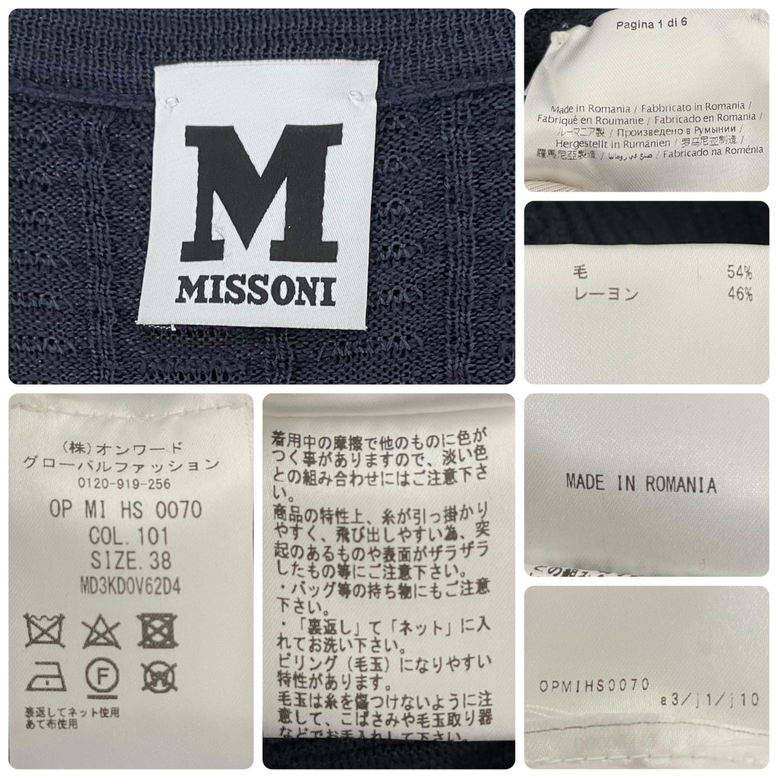 MISSONI ミッソーニ ネイビー リブニット ワンピース 半袖 毛54% レーヨン46% ルーマニア製 38 Sサイズ相当 レディース 上質 エレガント おしゃれ 0000484OC WWW_NICORILABO_COM