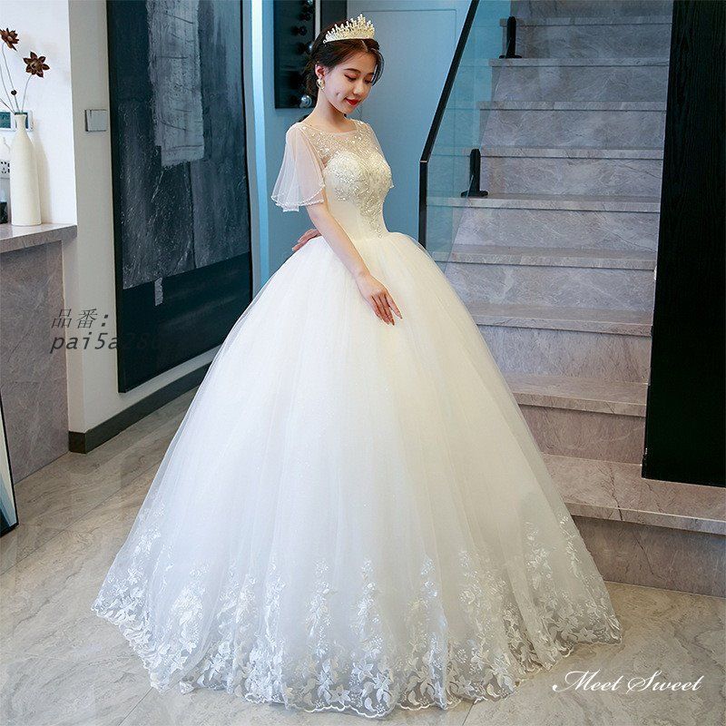 ウェディングドレス ロングドレス プリンセスラインドレス 半袖 二次会 結婚式 挙式 チュール ベルスリーブ ブライダル 花嫁 前撮り ウエディングドレス pai5a286399 WWW_NICORILABO_COM