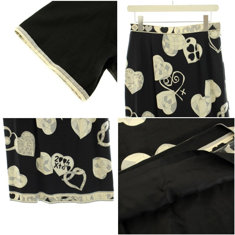 レオナール LEONARD ファッション FASHION スーツ セットアップ 上下 3点セット ノーカラージャケット カットソー 半袖 LL スカート ひざ丈 フ 76 XL カンカン素材 総柄 ウール 絹混 シルク混 黒 ブラック グレー |YTの検索結果