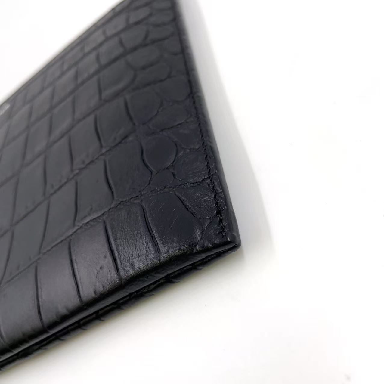 SAINT LAURENT PARIS クロコダイル型押しレザー タブレットスリーブ レザー ブラック クラッチバッグ シルバー 375950 CS30E 1000 WWW_NICORILABO_COM