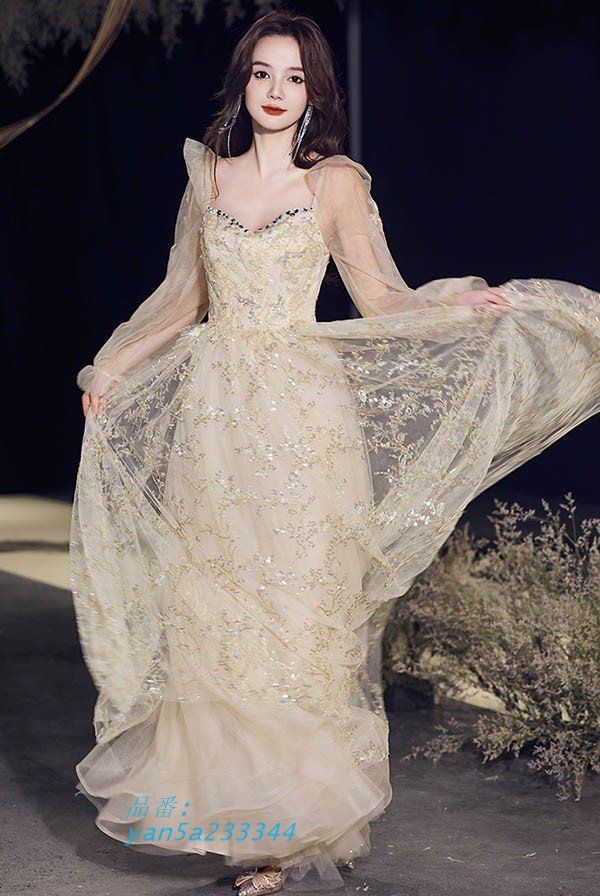 ドレス 大人 ピアノ 発表会 ロングドレス 小さいサイズ 披露宴 長袖 母親 結婚式 演奏会用ドレスロング 二次会 袖付き 演奏会 キラキラ yan5a233344 WWW_NICORILABO_COM