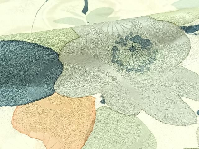 平和屋着物●上質な小紋 型染め 吉祥草花文 鬼しぼ縮緬 正絹 CAAY9428th