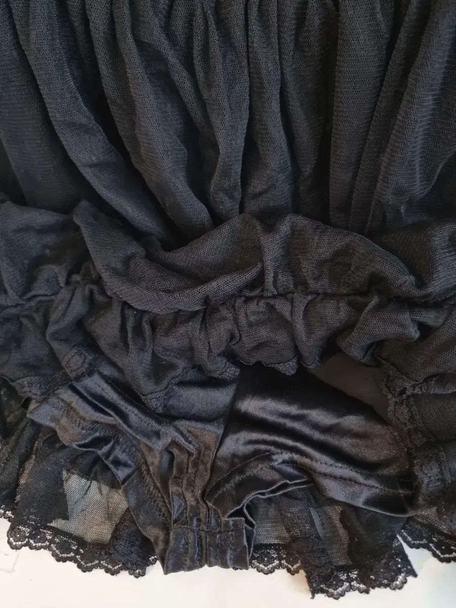裾にはボリューム感のあるメッシュレースフリル、内側は柔らかいサテン裏地