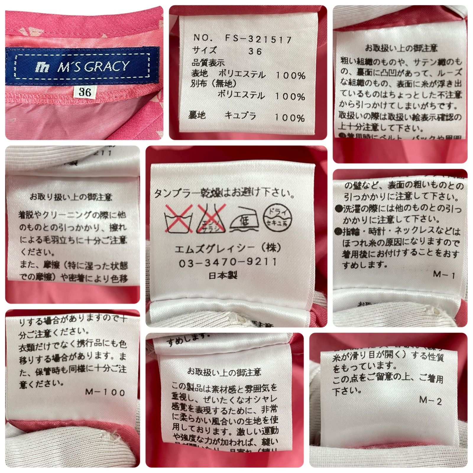 M S GRACY エムズグレイシー ピンク ドット柄 ワンピース ドレス ポリエステル 裏地キュプラ 日本製 36 Sサイズ相当 半袖 ティアードフリル レディース FS-321517 0000553OCの検索結果