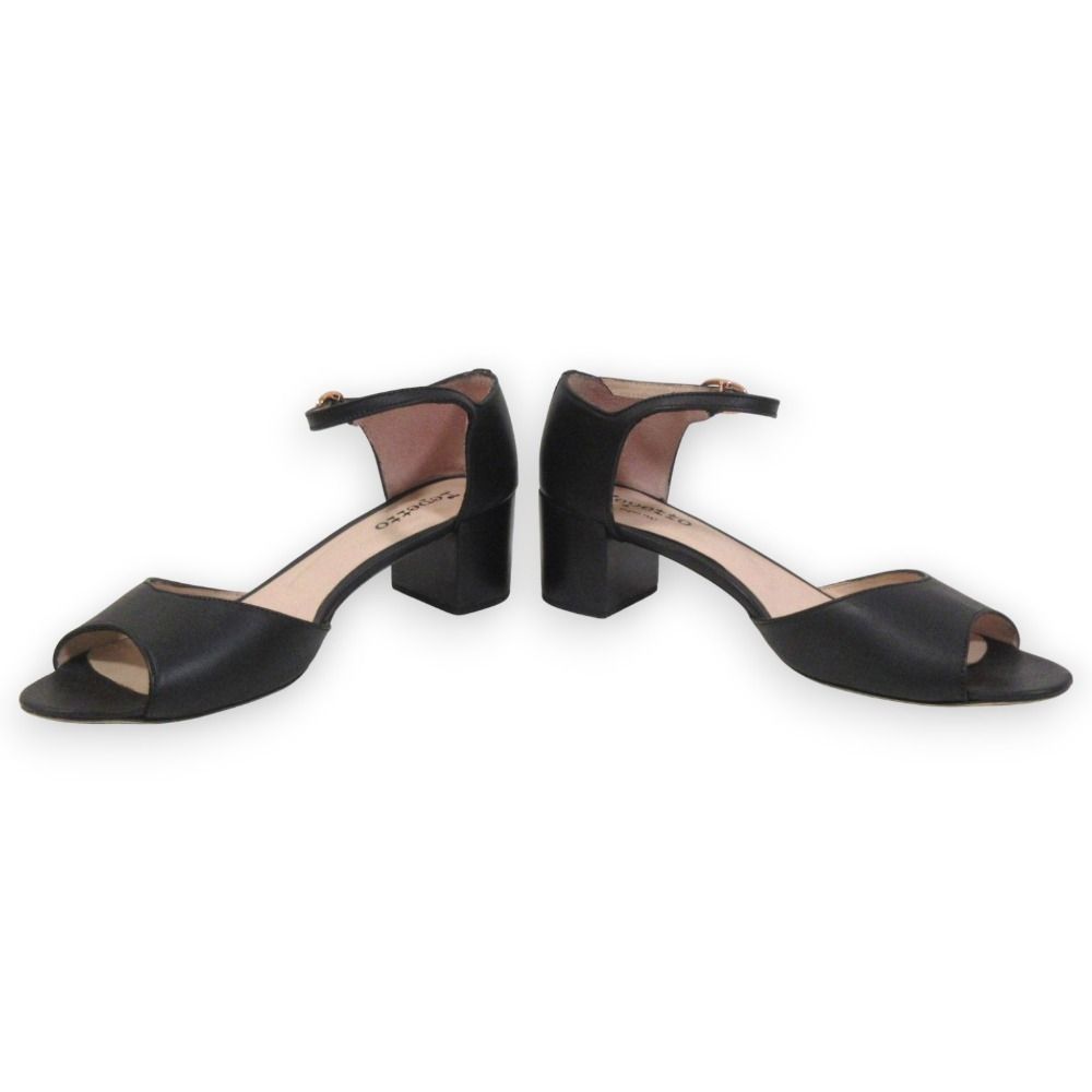 Repetto レペット レザー アンクルストラップ オープントゥ サンダル パンプス 39 約26cm ブラック×ピンクゴールド金具 レディース 古着 WWW_NICORILABO_COM