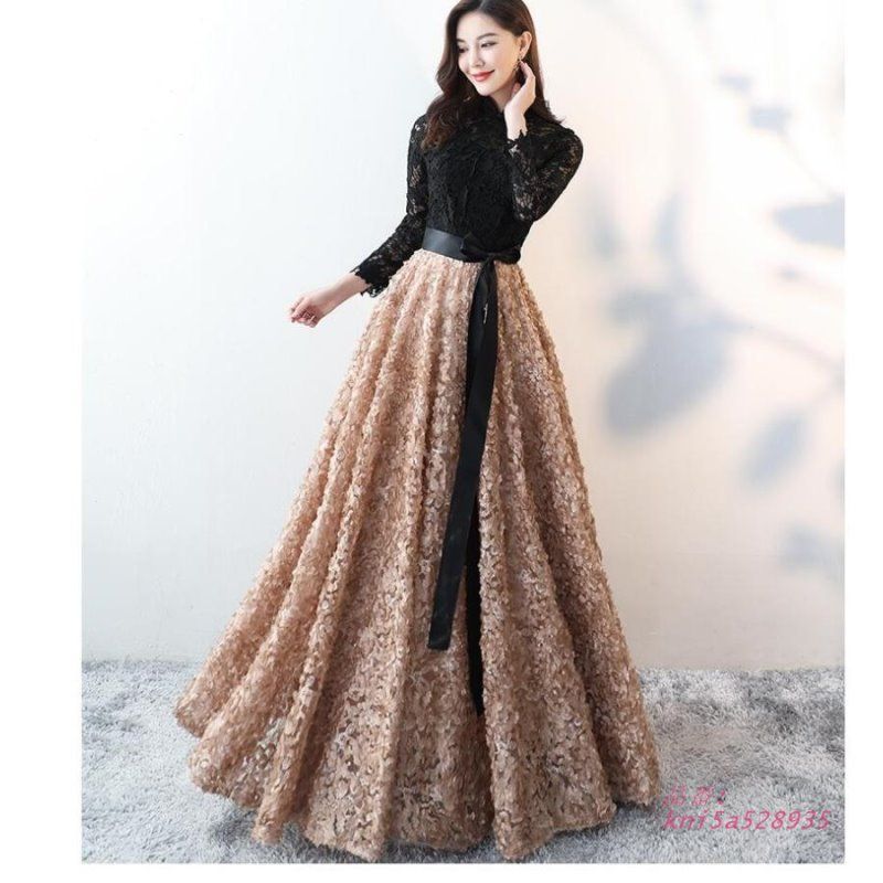 袖あり 立ち襟 ロングドレス 結婚式ドレス パーティードレス ウエディングドレス 二次会 舞台 発表会 大きいサイズ 衣装 イベント用 演奏会 ピアノ 披露宴 kni5a528935 WWW_NICORILABO_COM