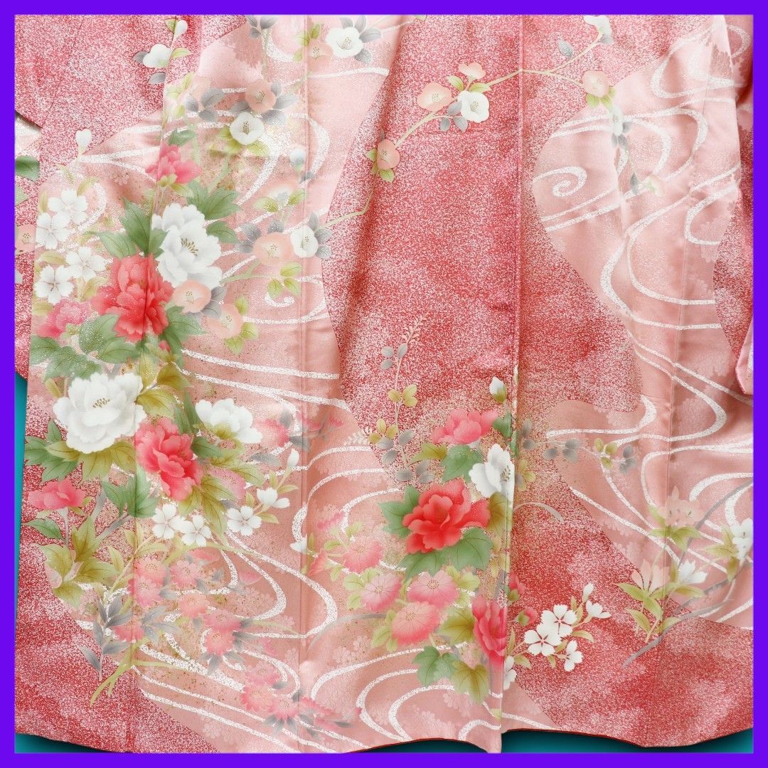三日月とうさぎ a0708 正絹 振袖 観世水に優美な花模様 薪のり散らし 金彩加工 金通し地の検索結果