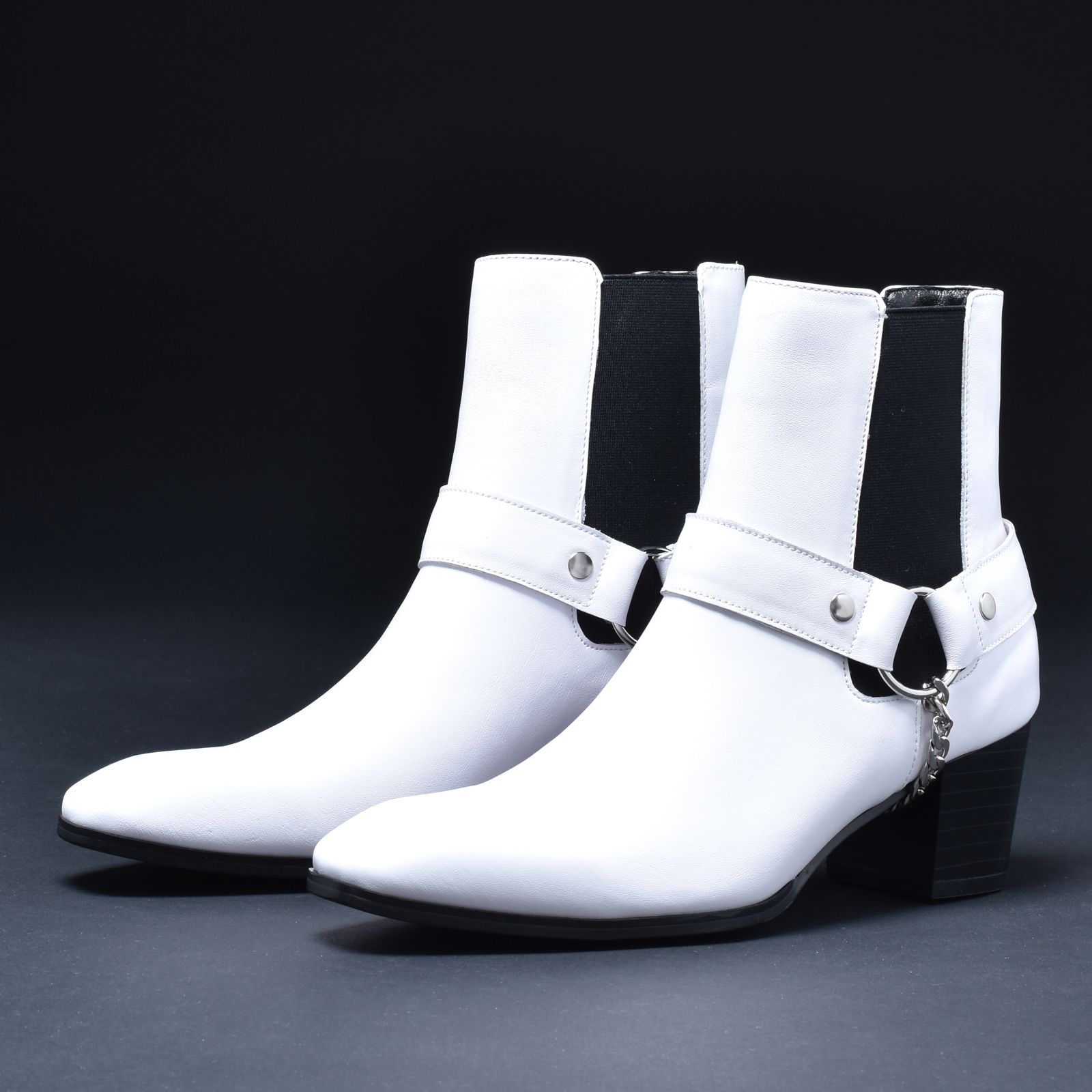 ♥ ヒールブーツ 3E エンデヴァイス サイドゴアブーツ メンズブーツ リング付き 本革 厚底ブーツ モード シルバーアクセント スタイリッシュ セクシー ヒール 高身長効果 クール 感 革靴 ワイド ホワイト 白 ELB660-2-CP-S WWW_NICORILABO_COM