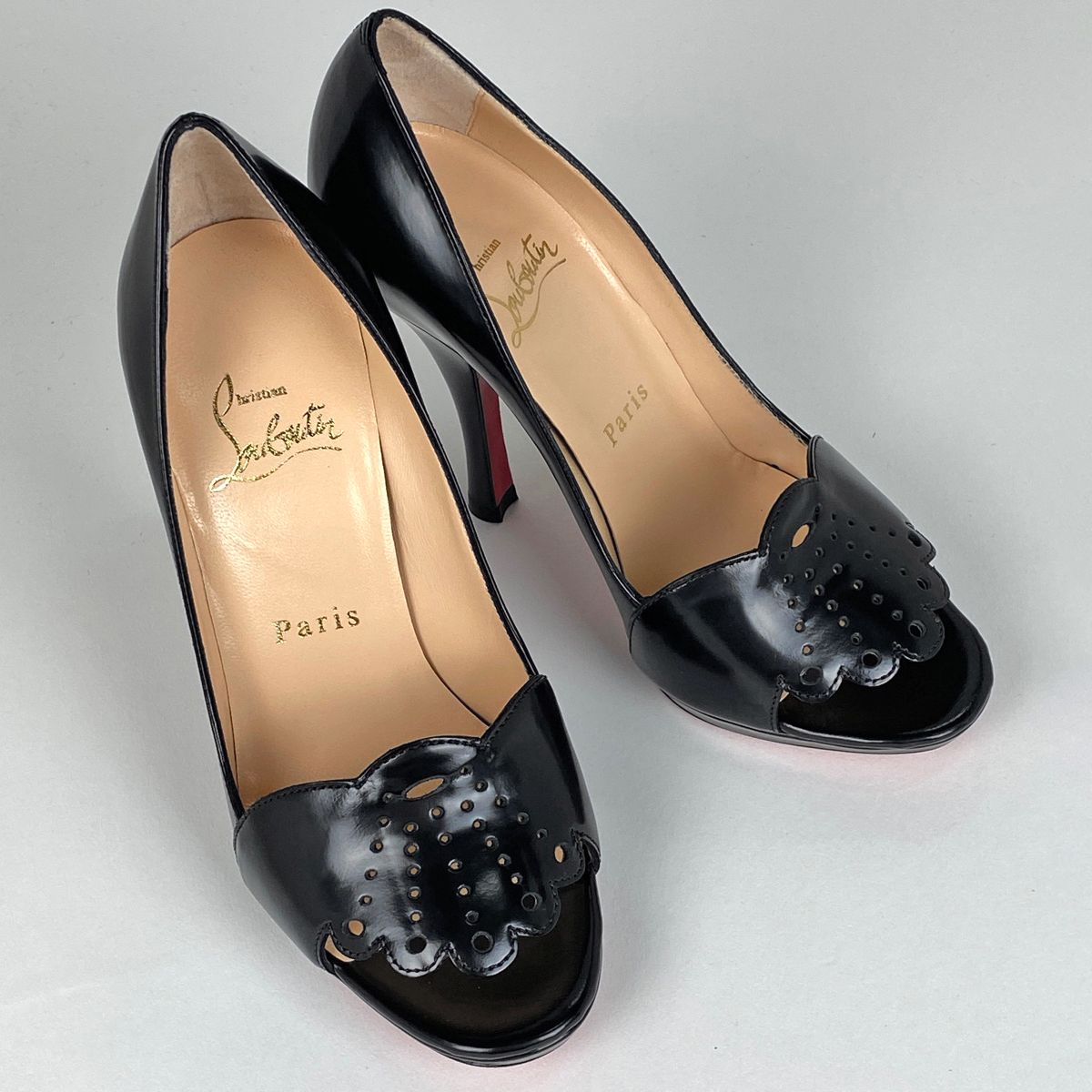 クリスチャンルブタン Christian Louboutin オープントゥパンプス ピンヒール ハイヒール 靴 パンプス レザー ブラック レディースの検索結果